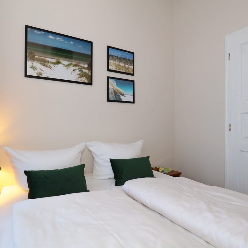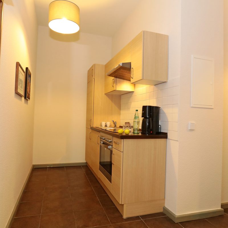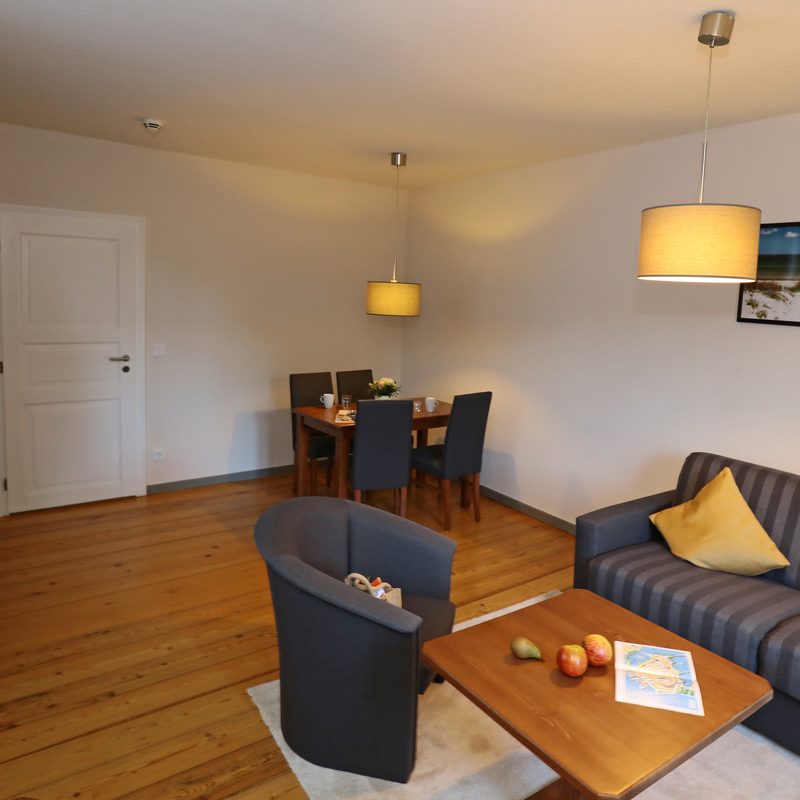 The 2- or 3-room apartments on the 1st, 2nd, 3rd floor and attic with a view of the inner courtyard or over the roofs of the old town have a size of 43 to 69 square meters. The apartments are equipped with one or two bedrooms with double bed, TV/radio and a living room/kitchen with dining area/sitting area incl. sofa bed, a kitchenette and a bathroom with shower/WC.